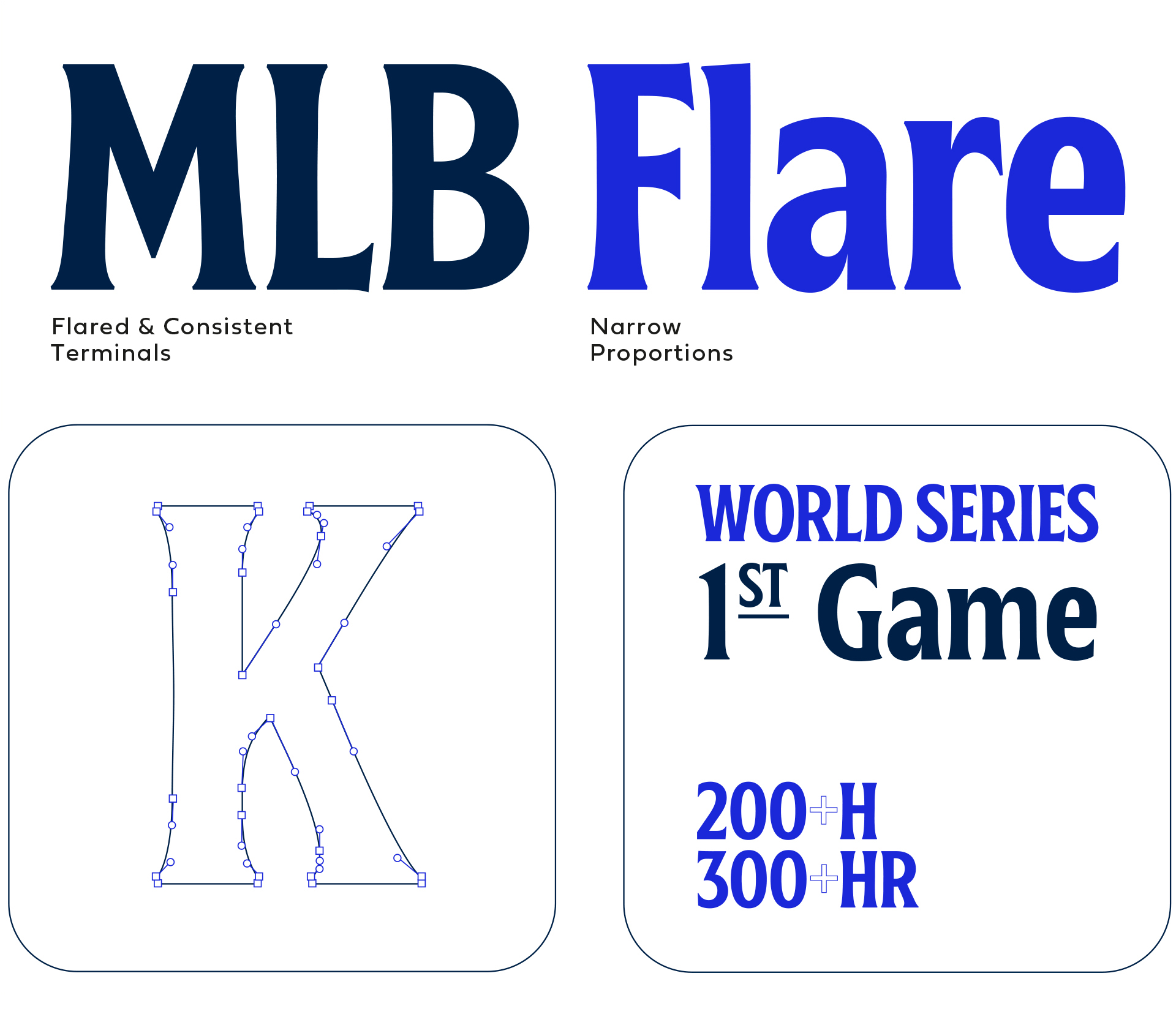 Mother Design made a curated collection of baseball’s greatest types and asked different american foundries to design each style of typeface. We collaborate designing a flared serif typography calling back to the particulars of hand-lettering that brings a touch of warmth and charm that feels uniquely baseball.